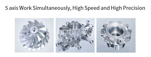 Artificial marble bed with low thermal expansion coefficient, resistant to deformation. Monolithic bed design provides high damping capacity and excellent vibration resistance. A/C axes use direct drive torque motors with high torque and precision. Cradle-type rotary table with central drive effectively suppresses vibration and eliminates backlash. High-speed, high-torque electric spindle ensures high speed and precision. Five-axis surface machining can be achieved in a single setup.Product Applications