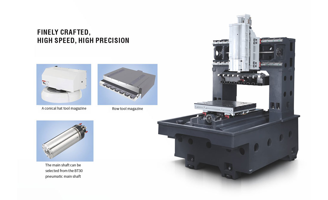 Gantry structure with reinforced base and columns, stable and reliable. Equipped with high-speed, high-precision spindle for excellent machining accuracy and surface finish. Spindle oil cooler ensures that heat does not affect spindle performance. Three axes use linear guides, providing fast speed and high precision. A multifunctional engraving and milling machine combining carving and milling capabilities. Ideal for light milling operations and precision machining of small molds such as copper and graphite parts.Product Applications